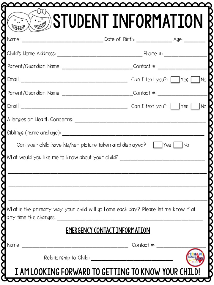1. Make sure those forms are ready! I have parents fill out a student information form on this night so I already have the information I need before the first day. If you have been keeping up with us, this should already be checked off your list. Click HERE to download my student information form for FREE!